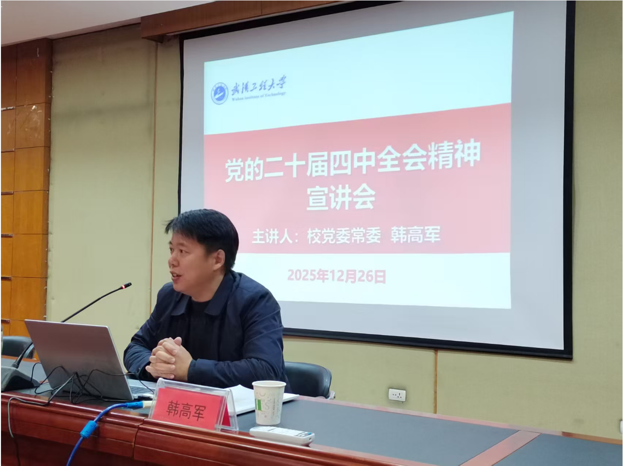 (通讯员 何洁)为深入学习贯彻党的二十届四中全会精神,引导师生切实把思想和行动统一到党中央决策部署上来,2025年12月26日下午,校党委常委、宣传部部长韩高军在武昌校区多功能报告厅作党的二十届四中全会精神专题宣讲报告。土木工程与建筑学院、继续教育学院、图书馆领导班子成员及师生代表参加宣讲会,会议由图书馆党总支书记曹迅飞主持。