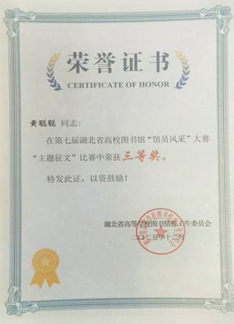 本网讯(通讯员 贡学斌)近日,第七届湖北省高校图书馆“馆员风采”大赛评选结果揭晓。武汉工程大学图书馆选送的集体素养展示作品《八段锦》凭借其出色的编排、整齐的演绎及深刻的文化内涵,在众多参赛作品中脱颖而出,荣获“优秀组织奖”,我馆黄聪聪老师参赛的主题征文作品荣获“三等奖”。