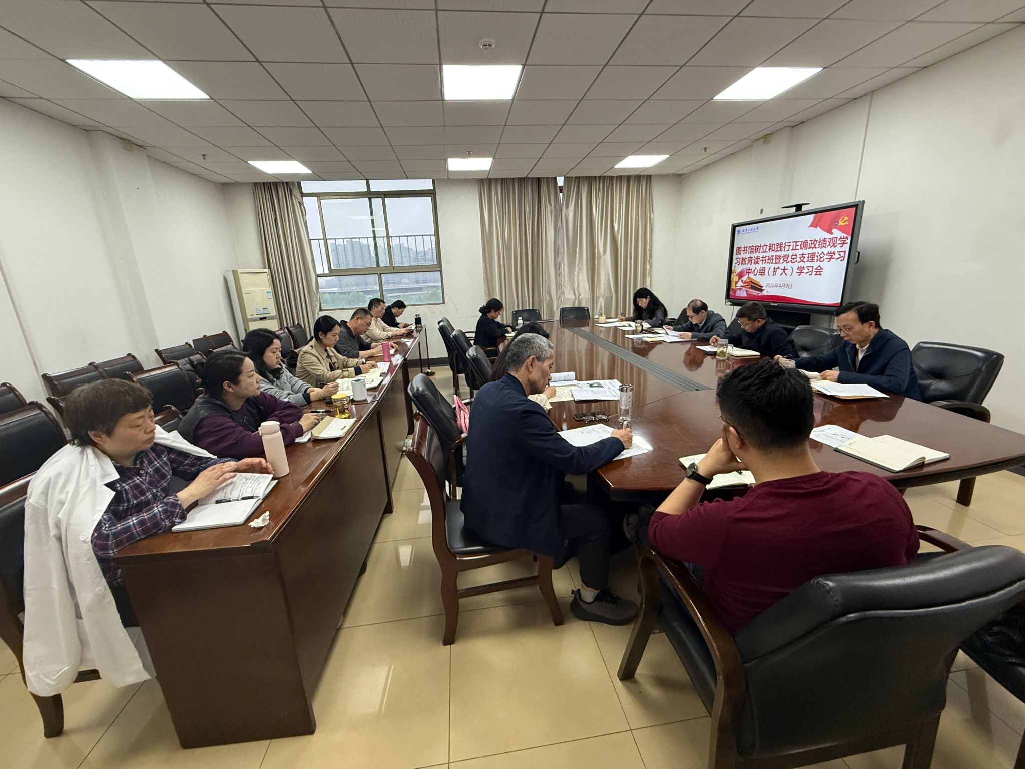 本网讯(通讯员 何洁)4月9日下午,图书馆在流芳校区图书馆五楼会议室召开树立和践行正确政绩观学习教育读书班暨党总支理论学习中心组(扩大)学习会。会议由党总支书记曹迅飞主持。